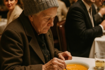 An elderly woman in old, worn clothes walked into an expensive restaurant. At the door, the hostess met