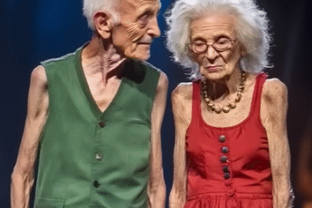 Under the soft glow of the stage lights, the audience held its breath. An elderly couple stepped into