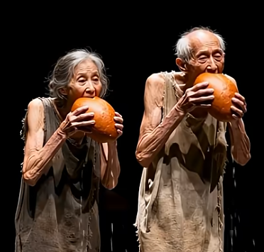 On a stage where bright lights, loud music, and dazzling costumes are often the center of attention, two elderly performers walked in quietly, almost humbly. They wore rough, tattered clothes that looked like they belonged to another century, and in their hands, they carried nothing more than simple gourds filled with water. At first glance, the audience wondered if there had been a mistake. What story could possibly be told with such ordinary objects?