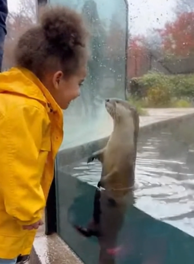 Her parents stood a few steps behind, touched by how gentle the otter was. It wasn’t scratching, biting, or acting afraid — it simply stared at Mia, tapping its tiny paw against the glass as if trying to communicate.