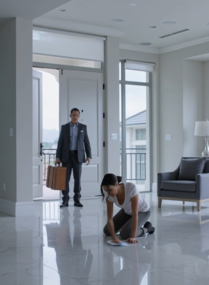 He stepped inside slowly, suitcase still in his hand. The air was cold, too clean, too still.